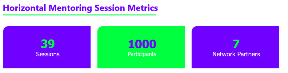 This cross-cutting approach ensured that ventures benefited from shared insights while also receiving guidance adaptable to their specific sector contexts. In total, 39 horizontal mentoring sessions were delivered, attracting over 1,000 participants (490 from Cohort 1 and 534 from Cohort 2).